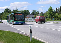 Von der B 199, die an unserer Gemeinde entlangführt, profitierten die Bürger sehr. Auf dieser Hauptverkehrsader zwischen Nord- und Ostsee fahren im 30-Minutentakt Schnellbusse (Fahrplan zum Download), die von der Bevölkerung stark frequentiert werden und mancher Familie die Anschaffung des Zweitwagens ersparen. Ab 5.20 Uhr hat man die Möglichkeit, in 15 Minuten in Flensburg zu sein.